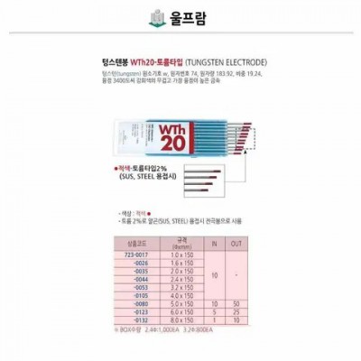 울프람 텅스텐봉 3.2파이 적색 토륨타입 요약정보 및 구매