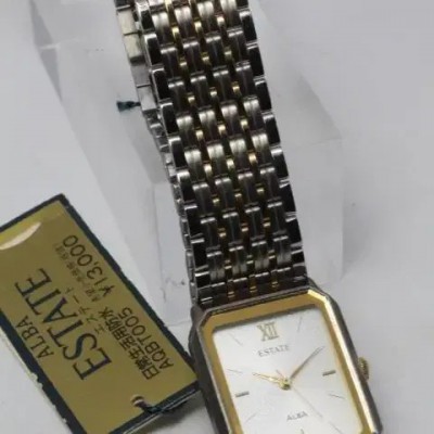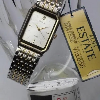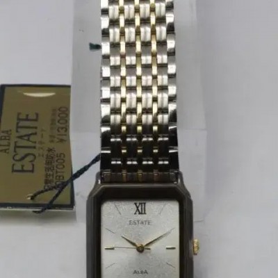 세이코 알바 탱크 쿼츠 SEIKO ALBA ESTATE QUARTZ빈티지 초희귀 새상품. 선물용 대가능. 여성용고급스러운 빈티지 감성 금장으로 드레스업!13,000 엔 정가. 전지 교환하였으나 현재 배터리 나감.80-90년대 빈티지로 추정SEIKO ALBA ESTATE QUARTZ :AQBT005 JAPAN케이스 사이즈 약 25mm x 17mm (용두 포함)벨트내 치수 약 12mm품번 AQBT005 : V701-5A30 R1 JAPAN 0D2788 AG (뒤덮개 번호)빈티지 새상품 환불 불가