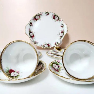 1조sold1조만 남아있습니다로얄알버트의 셀리브레이션의 화려한꽃의 조화로운 패턴입니다빈티지컨디션으로 벼룩가로 총4종 세트가입니다1조가격 총4pc77000사진에서와같이 금장스침 ,혹은로스 살짝있습니다그러나, 워낙에 금장이화려하고 패턴이 아름답기 때문에 쓰시기에 부족하지 않을만한 흠입니다자세히 금장을 들여다 보지는않습니다~백마크 확인가능하십니다사진마지막장컵9소서14접시2장으로사이즈16사이즈21빠르게 행운을 누리시길~~절대 사실수없는 가격이여요~귀달접시 판매완료새것을 원하시는분은 구매하실수 없습니다