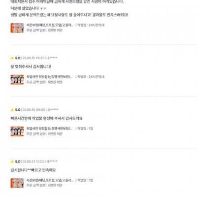 -후기 확인해 보세요^^-구글에서 초이디자인스토리 검색하면 더 많은 활동과 후기 확인할수 있습니다!(수수료없이 여기서 저렴하게 결제할수 있어요!)-당일보정,합성! (아침, 오후 결제시 저녁 받을수 있습니다)-1~2시간 내로 받기: 급행료 +5,000원 추가.[10,000원~] 헤어합성(앞머리가 이마와 눈썹을 가리는 경우, 귀합성 필요시 약간의 추가금 있음)[4,000원] 배경합성[7,000원~] 정장,와이셔츠 합성(목 가림 정도에 따라 추가금 있음)[7,000원] 증명사진 보정(피부보정, 좌우비대칭, 디테일한 얼굴성형보정, 잔머리제거, 밝기 조정, 머리 단정하게, 이목구비 뚜렷하게, 턱 어깨선 슬림하게)[유의사항]-선결제 후작업. 결제 확인되면 작업 시작합니다.-작업이 시작되면 환불은 불가합니다! 작업한 시간에 대한 비용입니다. -저화질사진은 만족스러운 결과를 얻기 힘들어요.-인화는 하지않고, 보정작업만 해서 파일로 드립니다.-문서조작은 문의사절!경력 : 미술전공(시각디자인과) 디자이너 출신 / 웹디자이너10년 퇴직 후, 프리랜서 디자이너로 10년.