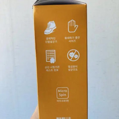 휴대하기 간편하고 보조배터리를 이용해 사용도 가능해서 집에서나 여행 갈 때 장소에 구애받지 않고 사용할 수 있는 제품 ,화학성분을 사용하지 않아 신발 변색이나 탈색 전혀 걱정없음, 2시간 자동 타이머 기능도 있음, 어떤 신발이든 사용이 가능