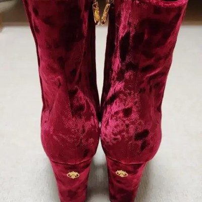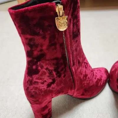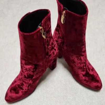 벨벳 소재이지만 관리하기 좋아요사이즈 240~245색상은 사진보다 톤 다운 와인색실물이 훨씬 이뻐요저한테는 사이즈 커서 보관만 했어요새상품입니다 ~^^굽높이 8cm