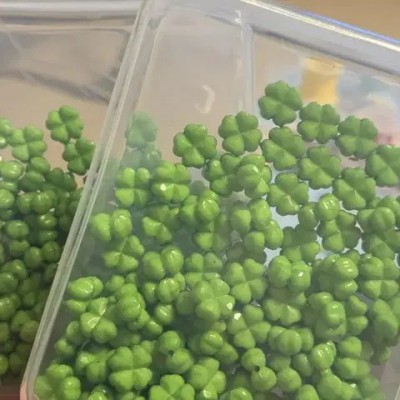 네잎클로버 비즈 약 100개 입니다.아크릴비즈 특성상 스크래치 있으니 확인 후 구매 바라요
