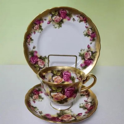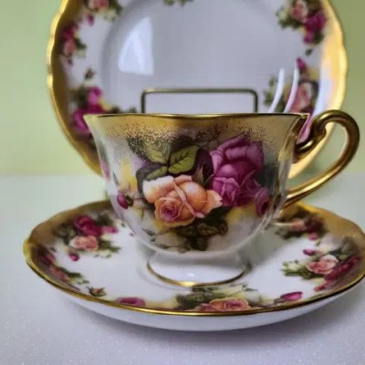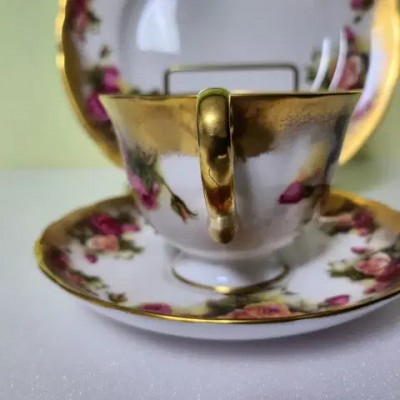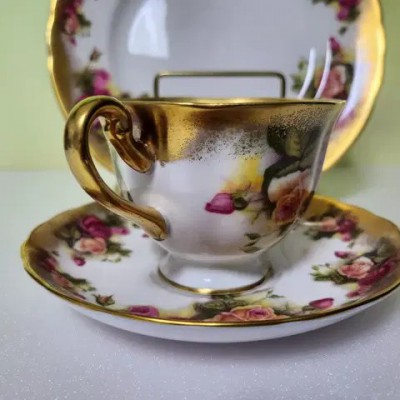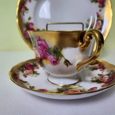 두껍고 화려한 골드트림의 로얄첼시아 골드로즈 입니다앤틱중에서도 장미모티브로 입체적이며 깊은색감의 24k 헤비골드 금장과 조화로운 페인팅되어진 독보적 아름다운 아이입니다보관 상태 훌륭하고 금장의 로스 볼수 없습니다다만 불빛스크레치 정도는 감안 하셔야 합니다 구성은 잔듀오 그리고 큰접시 셀럿접시구성으로 브레드접시 아닙니다이건 빠르게 잡으셔야 하십니다요~~빠르게 나갈수있음을 유념해주세요~~백마크 first골드각인 3983a잔9.7*5.7소서14셀럿접시 21.5