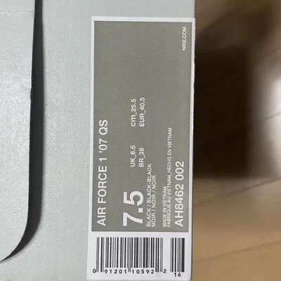 255사이즈입니다 사진 확인해주세요 :) 신발끈에 끼운 AF1 배지는 올백포스에서 끼운거에요 원래 제품엔 없는게 맞습니다.쿨거시 택포