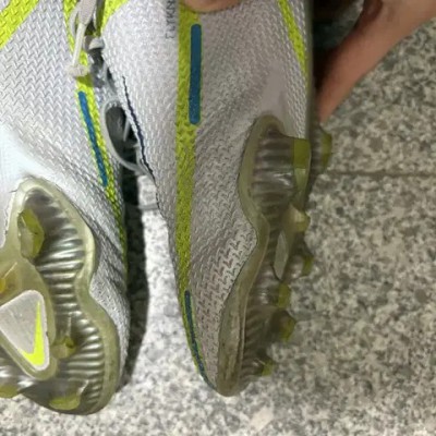 사이즈 265이고 보시다시피 상태 좋습니다! 신발끈 끝에 보면 플라스틱으로 마감 돼 있는 거 한 부분만 떨어졌는데 신으실 때 이상 없으시고 싸게 구매 하셔서 막 신으실 분들한테 추천드려요! 스터드 많이 남아 있고 앞코 벌어짐 없습니다!