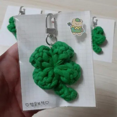 손 바닥만한 대왕 네잎클로버 뜨개키링 행운부적 요약정보 및 구매