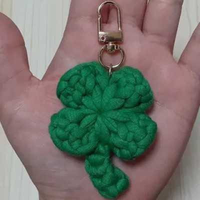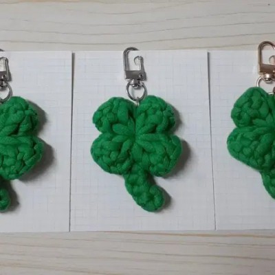 • 손 바닥만한 대왕 네잎클로버 뜨개키링 행운부적