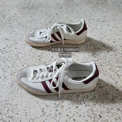 245 아디다스 진스 화이트 버건디 레드 스니커즈 > 신발 | 스쿠어마켓