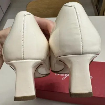로저비비에 트럼펫 메탈 오프화이트(4.5cm)사이즈 235강남 신세계 백화점에서 2023년 구입했습니다.웨딩 슈즈로 구매했고 웨딩촬영날, 본식날 두번 시착했습니다!풀박 구성입니다.쇼핑백/영수증*뒷굽 살짝 까짐 했고 다른 곳은 까짐 없습니다(사진 참고)*비브람 덧창도 7만원 주고 했습니다!