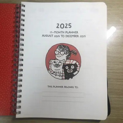 2024 8월 부터 2025 12월까지 되어있는 다이어리입니다!귀여운 일러스트가 있어 디자인 굉장히 귀여워요안에 스티커도 있어서 다꾸하시기 좋아요외국판매 제품이에요!원가 17.99달러 약 2만 4천원 제품입니다