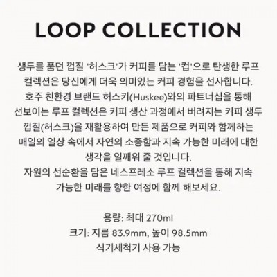 네스프레소 루프 그랑 룽고 컵 세트- 최대 용량: 270ml- 크기: 지름 839mm, 높이 985mm- 식기세척기 사용 가능박스도 같이 드려요~