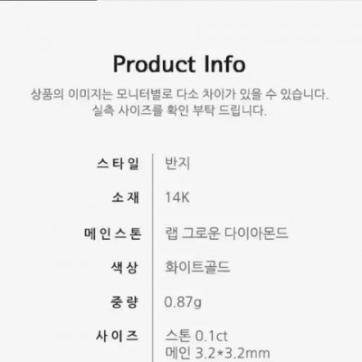 미니골드 14K 화이트골드 랩그로운다이아 반지 요약정보 및 구매