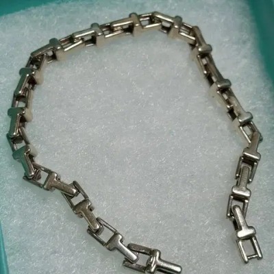 정품 티파니앤코 T 네로우 체인 브레이슬릿백화점 상품, 번개케어 통해 구매하였습니다. 길이 17.5cm 이며, 짧아서 구매 후 바로