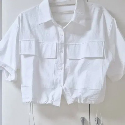 크롭셔츠 흰색 44~66가능총장45착용안하고 보관만해서 상태 양호하구요 청바지나 스커트에도 깔끔하고 예뻐요
