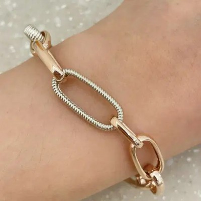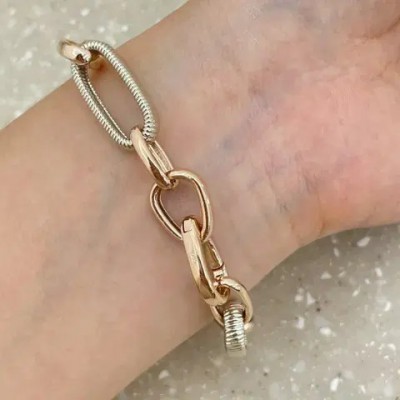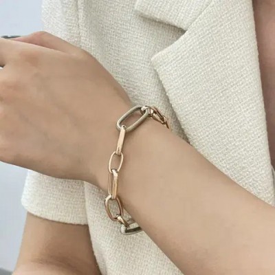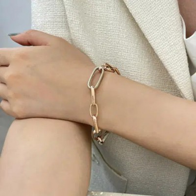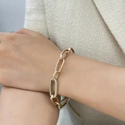14k 핑크골드의리얼화이트콤비로제작된~~유니크 하면서도럭셔리한 쎄련미가풍기는~스타일의패션팔찌에용!~^^볼륨감,두께감까지진짜 너무 멋져용!~^^17.5cm기준~14k 16.1g~4.3돈~