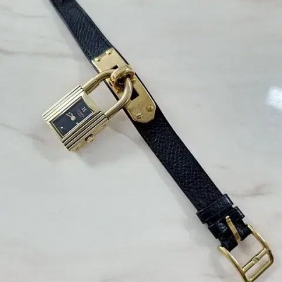 에르메스 켈리 자물쇠시계​에르메스 켈리 자물쇠 시계예요 골드컬러에 블랙가죽스트립이 세련된 시계로자물쇠 탈부착가능하요 목걸이 와 팔찌로 사용가능한 멀티시계예요잘사용 하지않아 컨디션좋아요