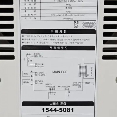 [계절가전] 위닉스 뽀송 제습기 (6리터)위닉스 뽀송 습기해결사 6L입니다. 외관 상태 거슬리는 흠집 없이 깨끗합니다. 냉장고처럼 1년 내내 켜놓는 가전과 달리 주로 여름에서 가을 사이에만 잠시 쓰이는 계절가전이라 사용 빈도가 낮아 신품 구입 후 10년이 지나도 실 사용기간은 1년 정도밖에 안 돼 굳이 값비싼 새 상품까진 필요 없다고 봅니다.장마철 빨래가 마르지 않아 퀴퀴한 냄새날 때 의류건조나 신발장, 주방, 벽지의 꿉꿉한 냄새 제거 및 곰팡이 방지에 유용합니다. 매년 물 먹는 하마 같은 제습제 몇 만 원어치 사다 비치해서 제거하는 습기량과 비교하면 효과나 비용 면에서도 전기 제습기 트는 게 이득입니다.서울시 구로구 직거래 (택배 불가)