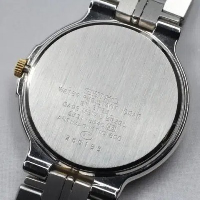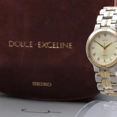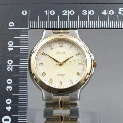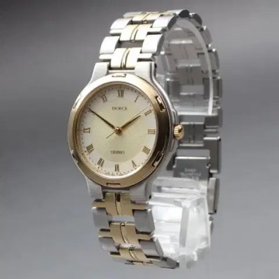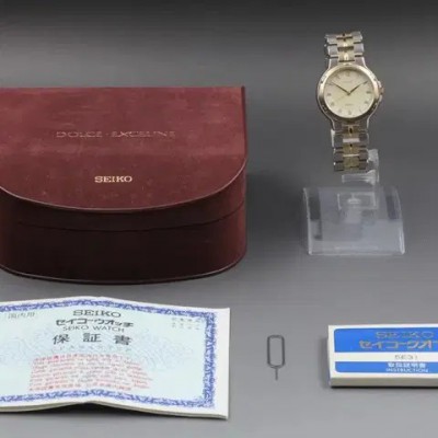 [SEIKO DOLCE 5E31-6D40 SADX011] 빈티지 골드 베젤 콤비 시계 풀세트 소장하던제품 보냅니다:)오늘구매시 27.9>23.91990년대 일본에서 생산된 SEIKO DOLCE 라인의 빈티지 드레스 시계입니다. 클래식한 골드 인덱스와 실버-골드 투톤 콤비 브레이슬릿이 조화를 이루며, 과하지않은 고급스러운 분위기를 연출합니다.제품 상태배터리 구동식 쿼츠 무브먼트 / 작동 이상 없음생활 흠집 거의 없는 MINT급 컨디션케이스 두께 6mm / 손목 최대 17cm 착용 가능구성품 (풀패키지 포함)SEIKO 정품 하드케이스 (DOLCE·EXCELINE 로고 인쇄)워런티 카드 / 설명서 / 여분 부속 / 탈착 툴시계 본체 (기본 링크 포함)