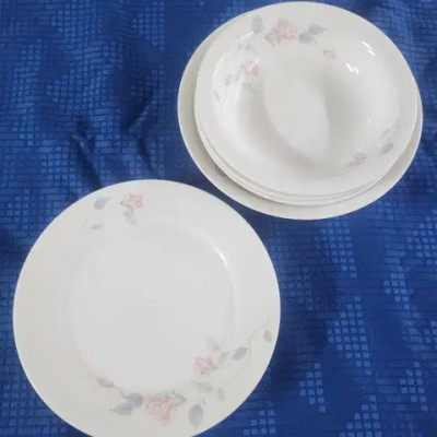 근대사 수집품 행남사접시 7장평접시지름21.5cm 3장오목접시 지름 21.5cm 1장지름 19cm 3장핑크색 장미와 그레이 잎사귀 문양이 특징이며, 빈티지 제품 특성상예민하신분 패스합니다 오래된 제품이지만상태좋아요7장 일괄가격입니다