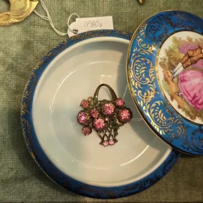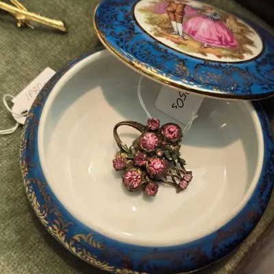 • 오리지널 빈티지 핑크 꽃바구니 브로치(1950s)