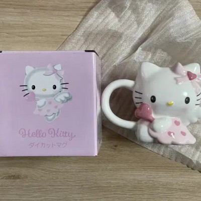 • 엔젤 헬로키티 머그컵 키티 다이컷 산리오 유리잔 천사 마스코트 도자기