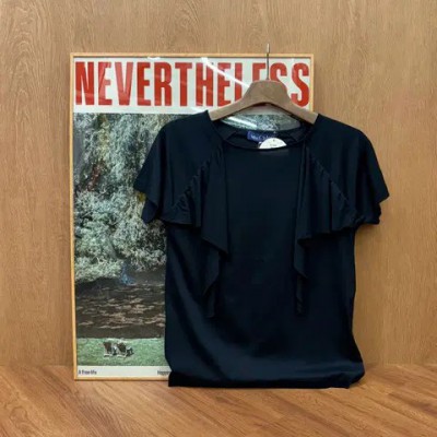 미스 끌로에 코튼 라운드넥 블라우스 래글런 러플 드레이프 디테일 블랙 요약정보 및 구매