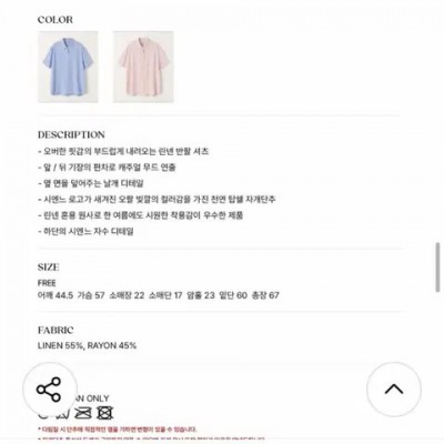 (새상품) 시엔느 셔츠 요약정보 및 구매