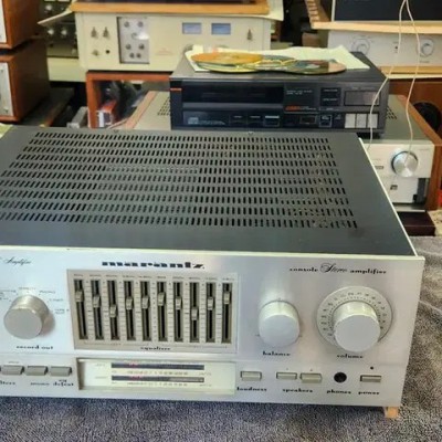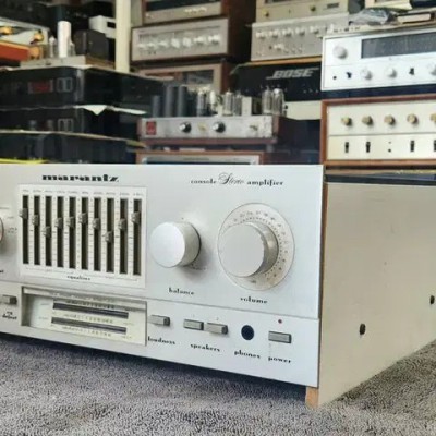 마란츠 PM 700DC 앰프입니다.보시면 새월대비 양호하며 판넬 약간에 헤드폰 단자 부위 세세한 기스있지만실물보시면 만족합니다. 벨란스 노브 다른제품으로 교환했고요.앰프 각 기능 소리정상 이고요.전 사용분께서 양옆 우드장착 했습니다.전원케이블 별도사용 할수있게 했고요.볼륨 노브가 다른 재품으로 마란츠 앰프중에서 가격대비 소리 만족하는 제품입니다.채널당 각 5밴드의 이퀄라이저를 제공하여 취향에 맞게 섬세한 음색 조절이 가능하며 전면 하단부 2개의 LED출력 메타가 장착되어 움직임 좋니다.출력 70와트70에 출력도 넉넉하니 스피커 매칭이 쉽게 할수있습니다.전원220 부천 소사동이며 안전배송 가격은35만원입력단 포노-2조(MC.MM)/ 스피커-2조/ AUX /튜너등등 지원합니다치수 : 416 x 146 x 330mm 무게 : 10k